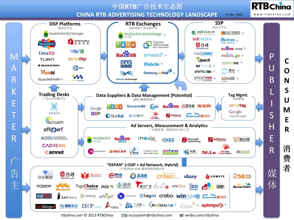 自《中国RTB产业地图》2013年10月版本发布后,陆续收到业界公司的反馈和建议。根据建议和分析已发布11月更新版补充了更多行业公司以及修正了某些企业的分类定位、图标使用等。感谢以下公司对10月版本提出的反馈: