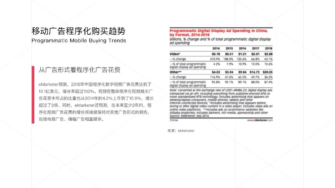 根据eMarketer的预测,中国数字视频观众在2016至2020年期间将增长25%,达到6.768亿,程序化买家也因此对将预算转到移动设备上充满信心,而APP内视频广告更高的互动率、更好的媒体表现和可视化,也格外受到他们的欢迎。