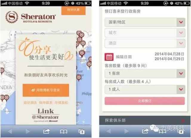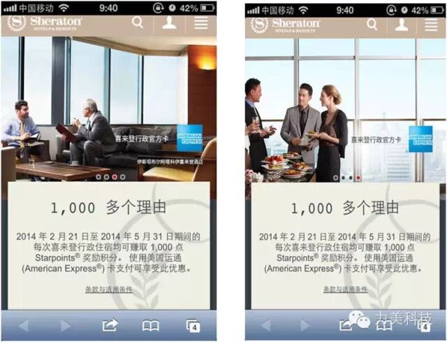 地域定向覆盖全国800个城市,1400个商圈,精准选取目标受众,实现线上注册,到线下指定80家喜来登酒店入住消费。