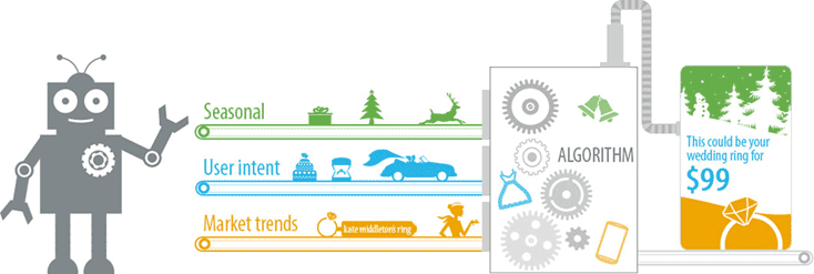 你可能会问,机器做的东西靠谱吗?答案是:机器并不帮你做所有的创意元素,创意的具体元素仍然需要设计大拿们去完成,但机器懂得当某个受众出现的时候,用什么样的创意元素来组合成一个具体的创意,会让这个人最感兴趣。
