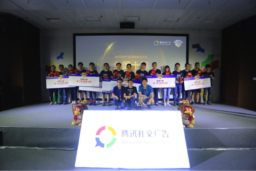 7月6日,首届腾讯社交广告“高校算法大赛”在深圳腾讯大厦举行了现场答辩及颁奖典礼。经过历时近2个月的激烈角逐,南京大学的“nju_newbie”战队以领先优势夺得冠军,获得30万巨额奖金。由大连理工大学及清华大学学生组成的“Raymone”团队获得亚军及10万奖金,吉林大学、北京邮电大学、北京航空航天大学的“我很难受”团队获得季军及5万奖金,北京师范大学的“闹猫”与北京大学的“到底对不队”团队在答辩环节中表现突出,并列获得本次大赛的最佳表现奖。