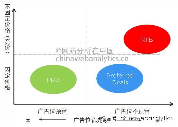 PDB方式支持传统的CPD(Cost Per Day)的广告采买方式,也支持CPM(Cost Per Milli,即广告被千次曝光所需的成本)和CPC(Cost Per Click)的方式。 第二种,被称为Preferred Deals(优先交易),与第一种方式相比,情况略有不同。第一种方式下,广告位资源是广告投放前就锁定的,但在这种方式下,广告资源具有一定的不确定性。这个不确定性并不是指广告位不能被锁定,也不是指广告的价格不能预先谈好,而是指这个广告位的展示量,不能预先保证。什么意思呢,比如你看中了网站分析在中国(www.chinawebanalytics.cn)的这个博客上的某个广告位,这个广告位碰巧是按照CPM方式出售的。由于我的网站的流量每天都不一样,有时候多,有时候少,因此这个广告位上广告的展示次数不能预先确定,这就意味着尽管广告位可以卖给你,但是展示量却保证不了,这样你在我这个广告位上做广告的预算就不能精确预知了。 更何况,我的这个广告位因为是按照CPM来出售的,也就不一定只是卖给你,我可能同时还卖给了另外一个广告主,并且我还保证了给他每天确保1000次展示,而卖给你就只能是在卖个另一个广告主之后,是他买走的1000次之外的剩下的展现量。即先紧着别人用,剩下的才能给你,这种情况下,量就更不容易保证了。这个例子是现实世界中常常发生的情况,对于另外那个广告主而言,他跟我的购买方式实际上是第一种,即PDB的购买方式,而跟你,则是Preferred Deals的购买方式。从这里可以看出来,媒体在释放广告资源的时候,PDB方式的优先级,要高于Preferred Deals方式,而Preferred Deals的优先级,又高于需要完全竞价的RTB。